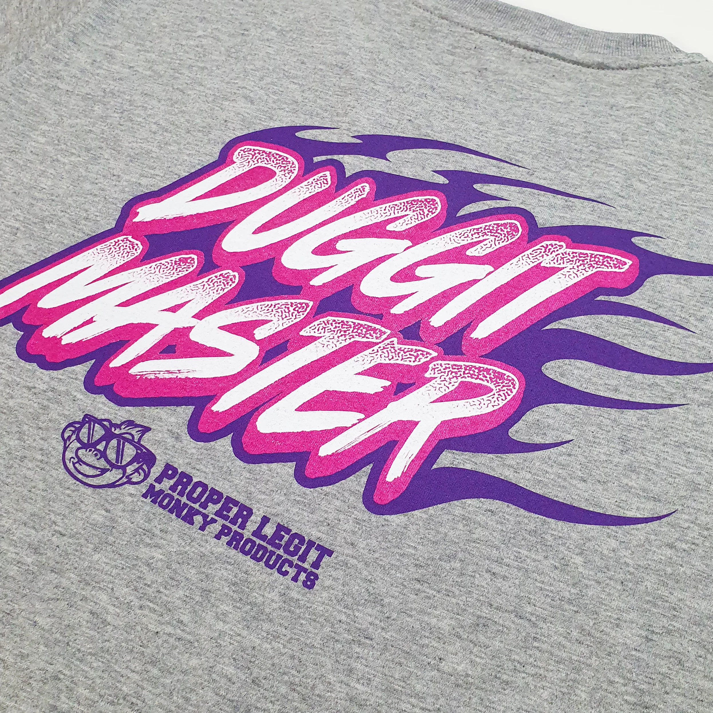 Highest quality organic 100% ringspun cotton T shirt featuring super sick hand drawn rear Duggit Master flame logo! Are you a Duggit Master? Then do a buy and receive the power! Features classic white / pink / purple fade Duggit Master text logo complete with purple flames for maximum BHP gains, sick! Complimented with purple proper legit logo for ultimate John action!