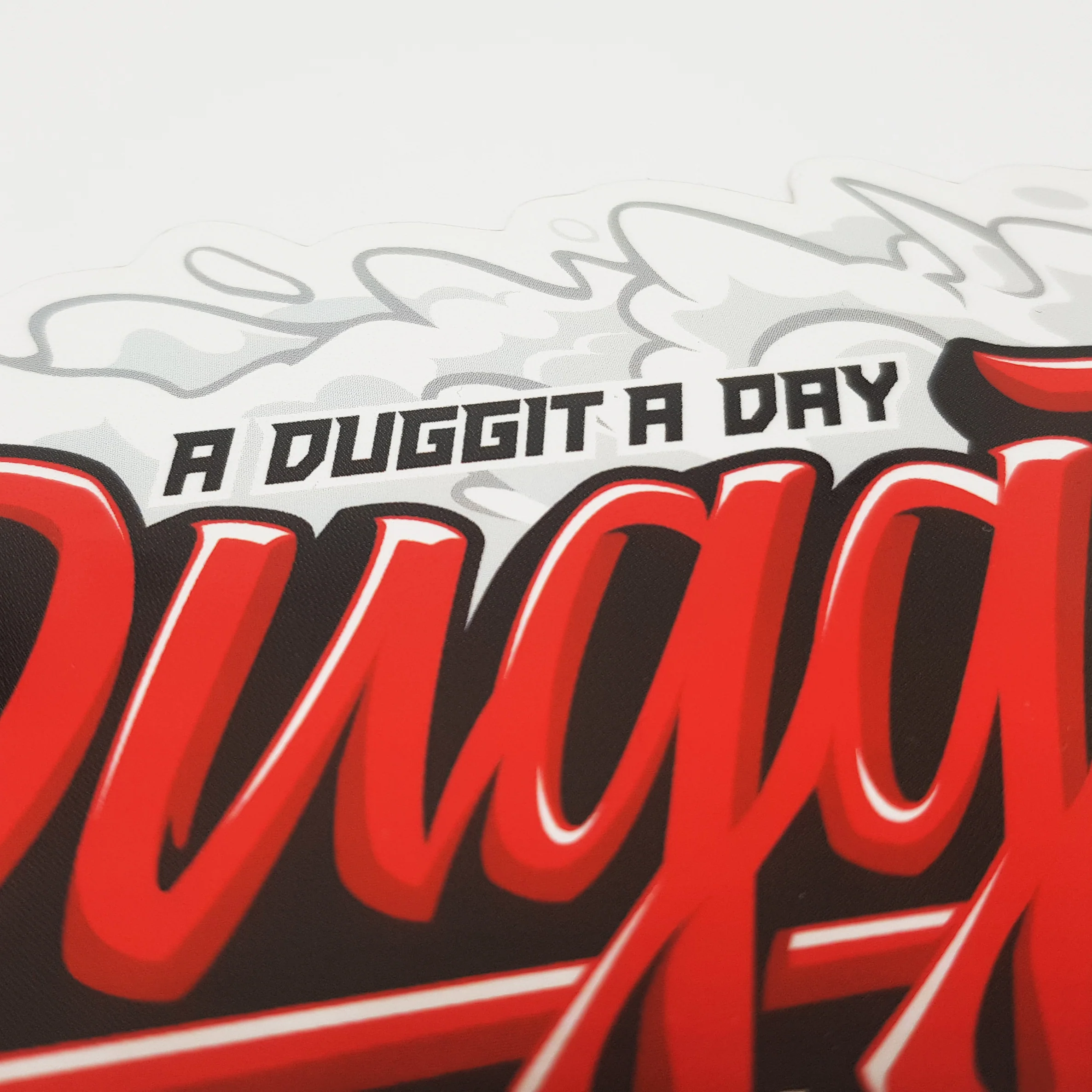 DETAILS – Duggits die cut plastic vinyl sticker! Savage design featuring my S15 wheel, fat smokes and "a duggit a day keep the doc at bay" slogan, perfect for any aspiring duggit master! Finished in red/black traditional ML colours!