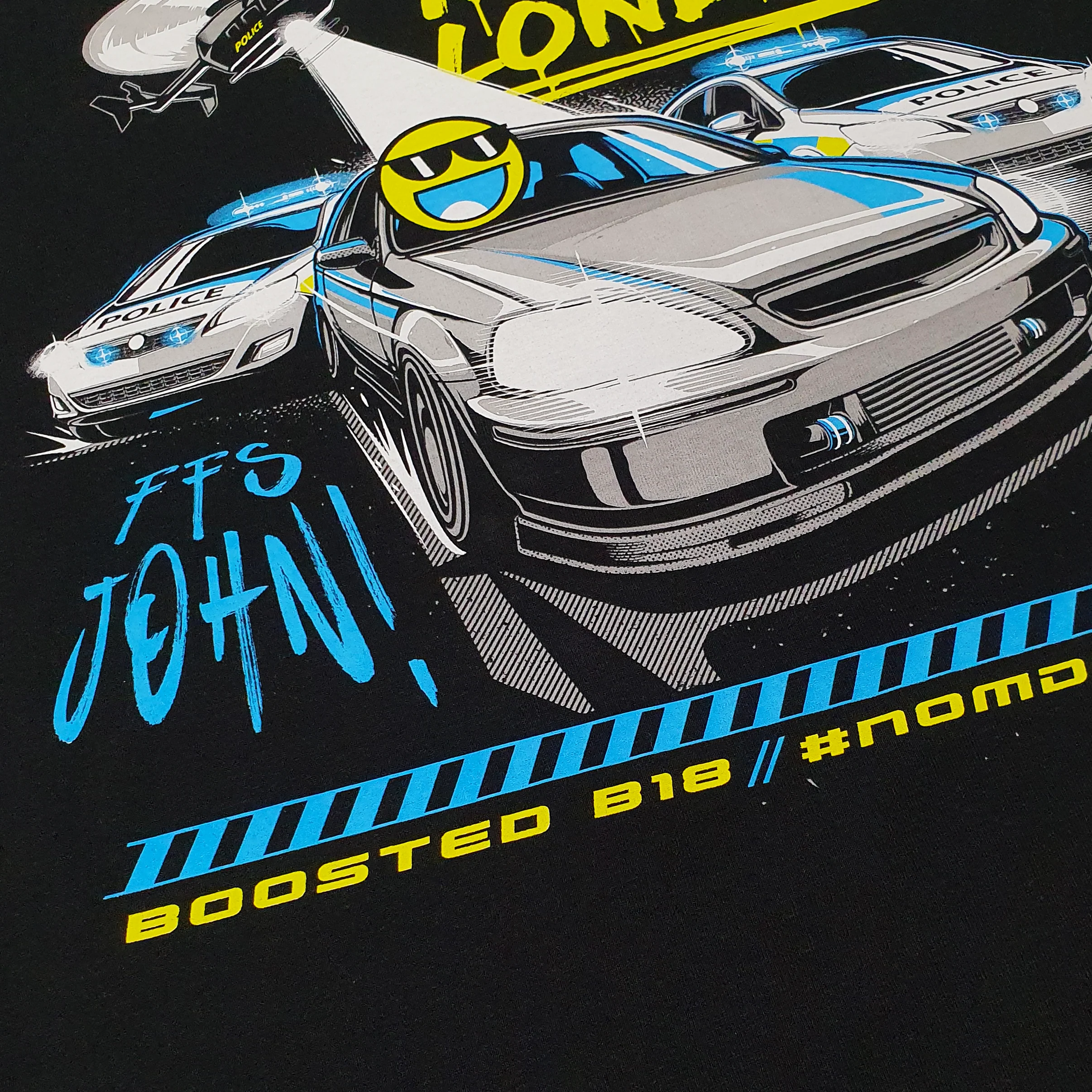 Features my Nomda Civic B18 turbo monster, two naughty Police cars, Police helicopter (actually happened), John emoji, Monky London graffiti logo finished in yellow and and FFS John logo finished in striking blue!