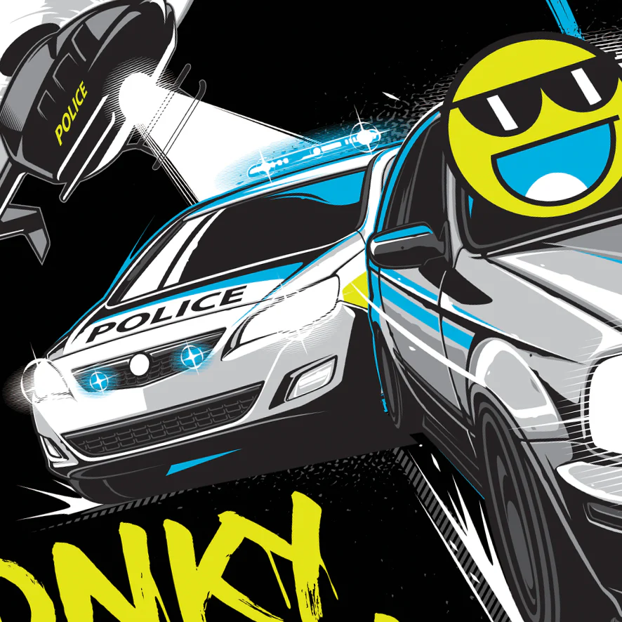 Wicked design featuring my Nomda Civic B18 turbo monster, two naughty police cars, Police helicopter / search light, John emoji, Monky London logo and For F**k Sake John graffiti!